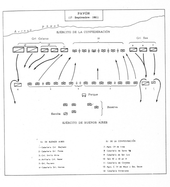 una altura al Sur del arroyo Pavón, distribuyendo su caballería en ambas