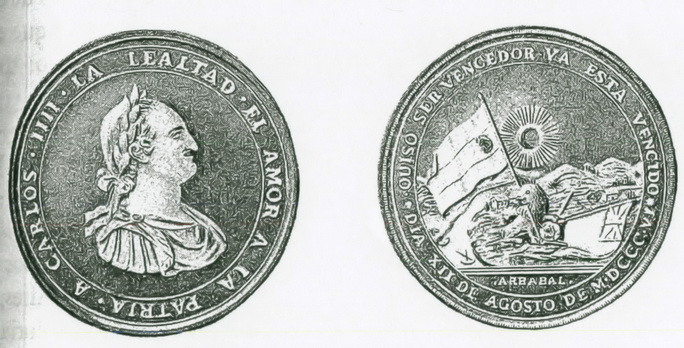 del anverso y dice: ”de su Rey y de su Patria, Liniers, Concha y Lasala,